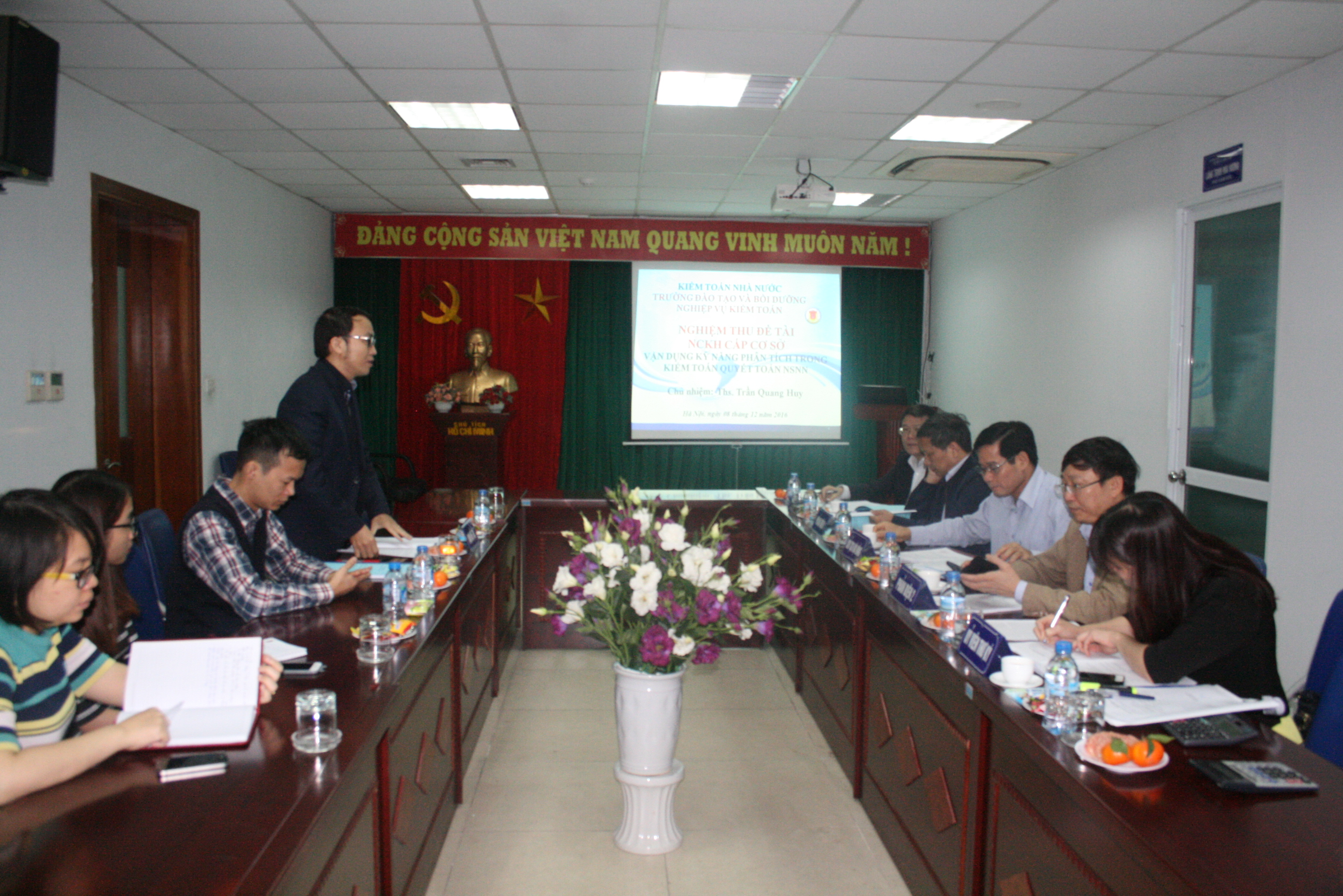 (khoahockiemtoan.vn) - Sáng ngày 8/12/2016, Trường ĐT&BD nghiệp vụ kiểm toán tổ chức nghiệm thu Đề tài cơ sở“Vận dụng kỹ năng phân tích trong kiểm toán quyết toán ngân sách Nhà nước”, Đề tài do Ths. Trần Quang Huy làm Chủ nhiệm, TS Lê Đình Thăng - Giám đốc Trường Trường ĐT&BD nghiệp vụ kiểm toán làm Chủ tịch Hội đồng.
